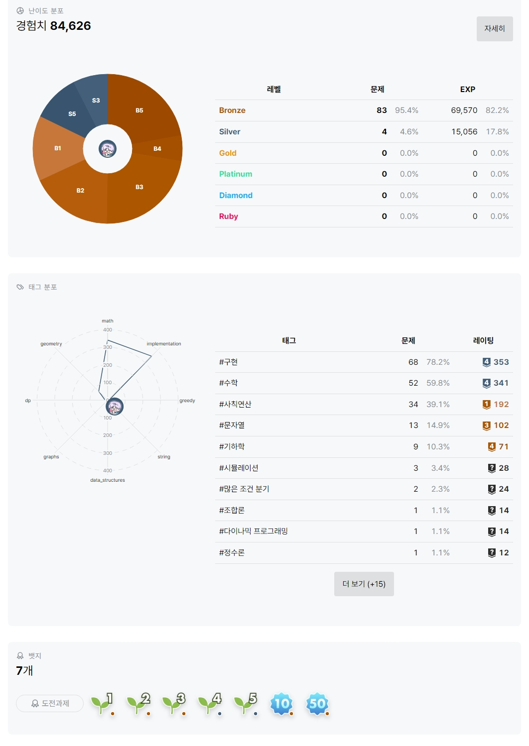 아직.. 브론즈 문제만 열심히 풀어서 빠른 레벨업은 못했지만